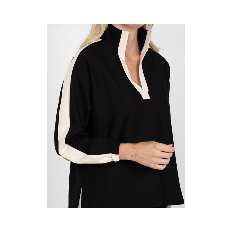 - Long elastic dolman sleeves
